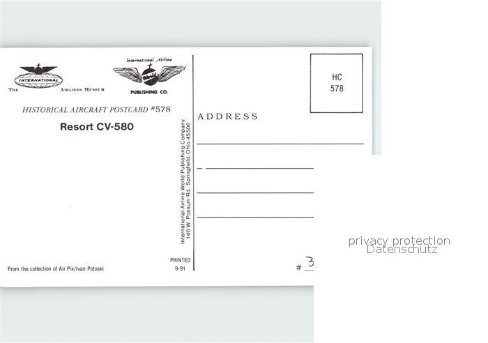 Flugzeuge Zivil Resort CV-580 postalisch nicht gelaufen Erhaltung siehe scans