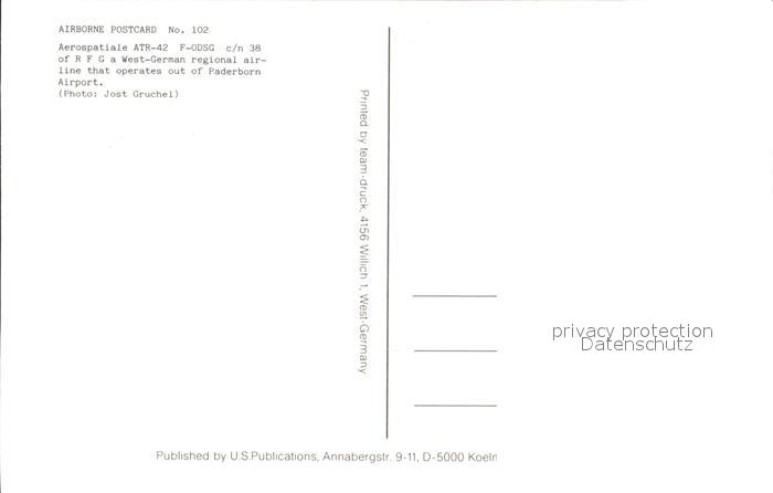 Flugzeuge Zivil RFC Aeropatiale ATR-42 F-ODSG c/n 38 postalisch nicht gelaufen Erhaltung siehe scans