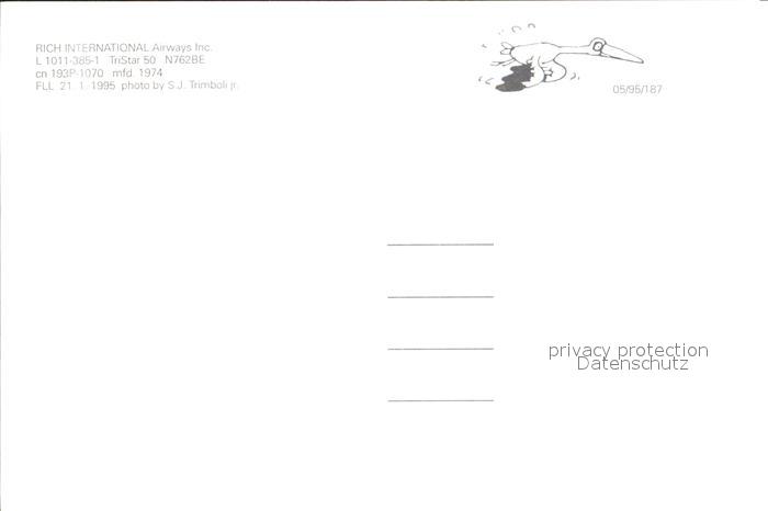 Flugzeuge Zivil Rich International Airways Inc. L1011-385-1 TriStar 50 N762BE cn 193P-1070 postalisch nicht gelaufen Erhaltung siehe scans