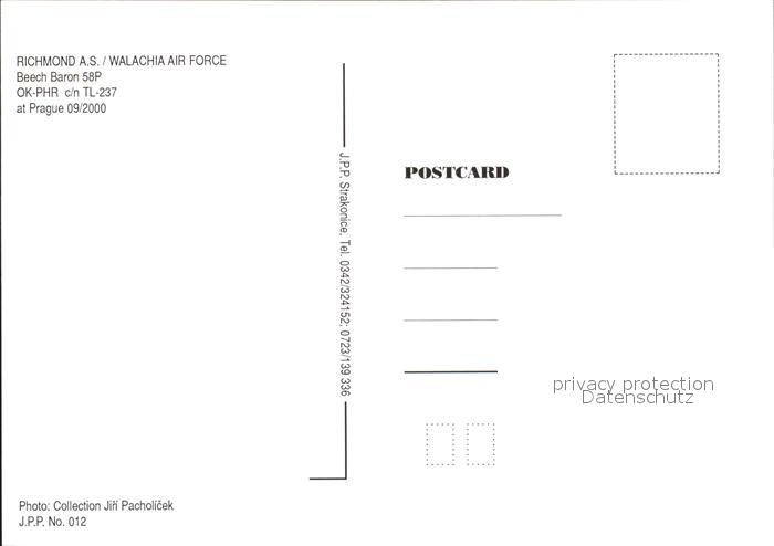 Flugzeuge Zivil Richmond A.S. Walachia Air Force Beech Baron 58P OK-PHR postalisch nicht gelaufen Erhaltung siehe scans