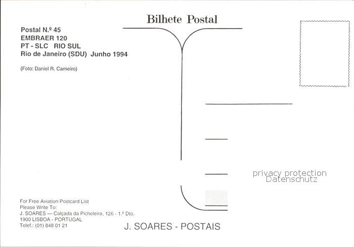 Flugzeuge Zivil Rio Sul Embraer 120 PT-SLC postalisch nicht gelaufen Erhaltung siehe scans