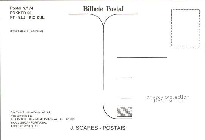 Flugzeuge Zivil Rio Sul Fokker 50 PT-SLJ postalisch nicht gelaufen Erhaltung siehe scans