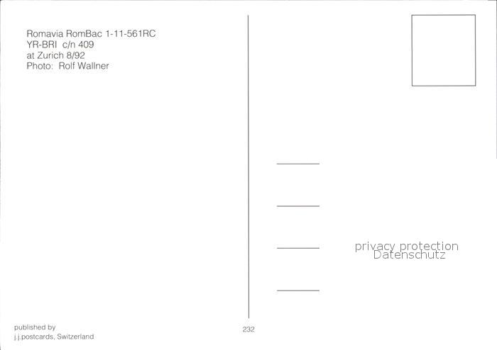 Flugzeuge zivil Rmavia RomBac 1-11-561RC YR-BRI c/n 409 Zuerich postalisch nicht gelaufen Erhaltung siehe scans