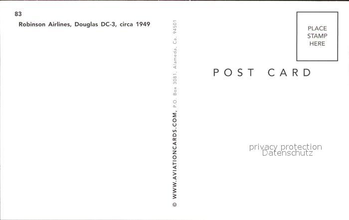 Flugzeuge Zivil Robinson Airlines Douglas DC-3 postalisch nicht gelaufen Erhaltung siehe scans
