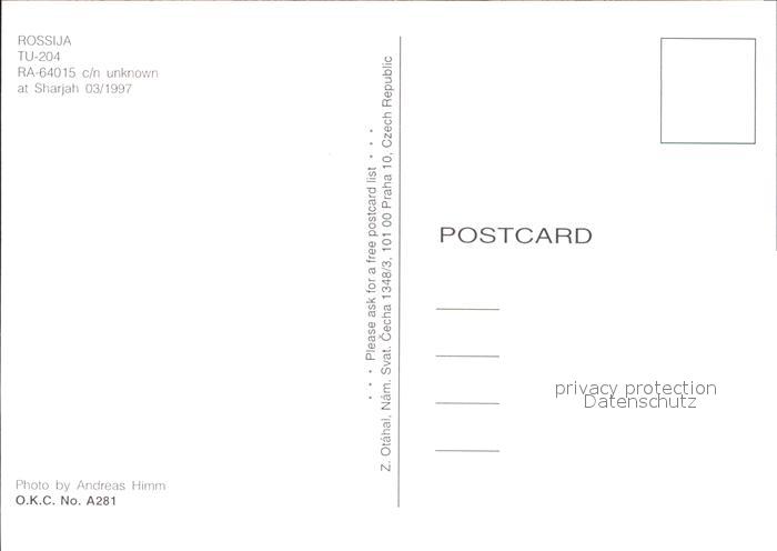 Flugzeuge Zivil Rossija TU-204 RA-64015 postalisch nicht gelaufen Erhaltung siehe scans