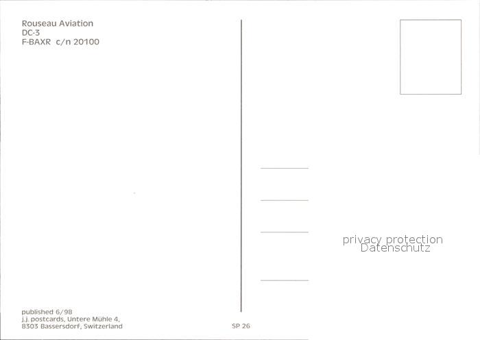 Flugzeuge Zivil Rousseau Aviation DC-3 F-BAXR c/n 20100 postalisch nicht gelaufen Erhaltung siehe scans
