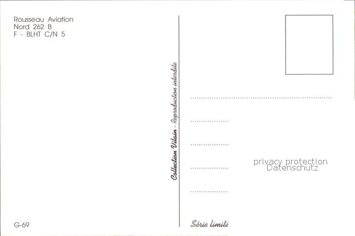 Flugzeuge Zivil Rousseau Aviation Nord 262 B F-BLHT C/N 5 postalisch nicht gelaufen Erhaltung siehe scans