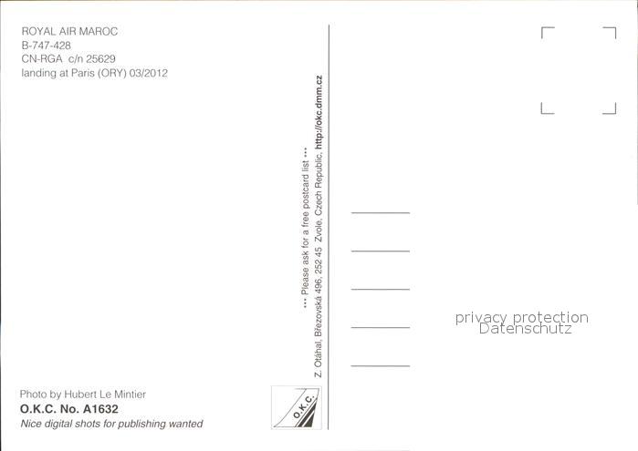 Flugzeuge Zivil Royal Air Maroc B-747-428 CN-RGA c/n 25629 postalisch nicht gelaufen Erhaltung siehe scans