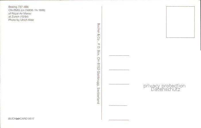 Flugzeuge Zivil Royal Air Maroc Boeing 737-4B6 CN-RMG cn 24808 postalisch nicht gelaufen Erhaltung siehe scans