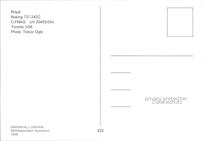 Flugzeuge Zivil Royal Boeing 737-242C C-FNAQ c/n 20455/254 postalisch nicht gelaufen Erhaltung siehe scans