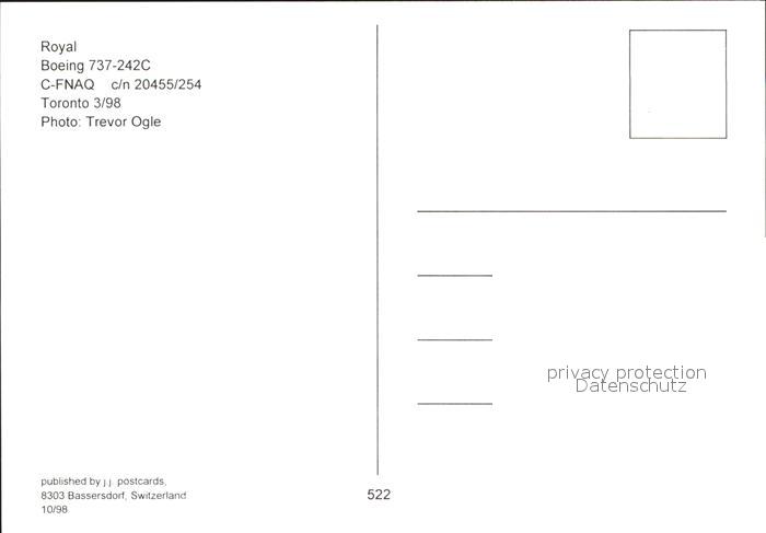Flugzeuge Zivil Royal Boeing 737-242C C-FNAQ c/n 20455/254 postalisch nicht gelaufen Erhaltung siehe scans