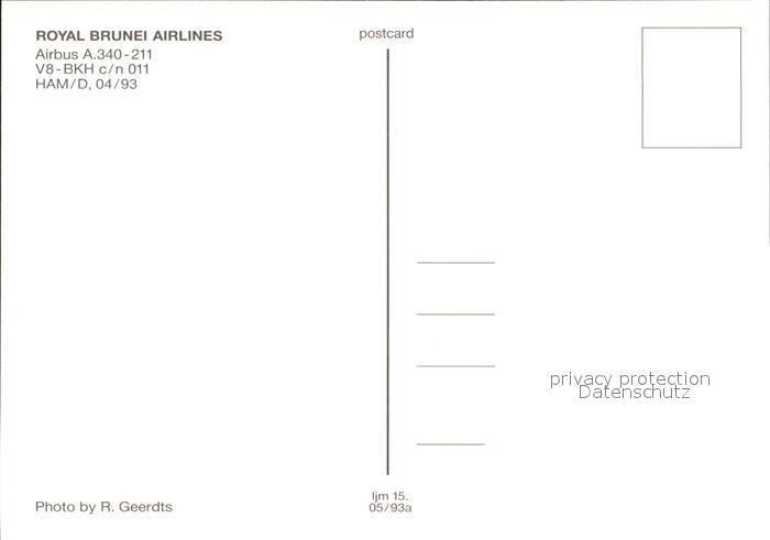 Flugzeuge Zivil Royal Brunei Airlines Airbus A-340-211 V8-BKH c/n 011 postalisch nicht gelaufen Erhaltung siehe scans
