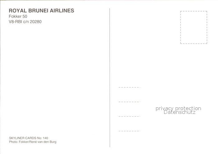 Flugzeuge Zivil Royal Brunei Airlines Fokker 50 V8-RBI c/n 20280 postalisch nicht gelaufen Erhaltung siehe scans