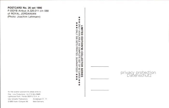 Flugzeuge Zivil Royal Jordanian Airbus A320-211 F-OGYB c/n 088 postalisch nicht gelaufen Erhaltung siehe scans