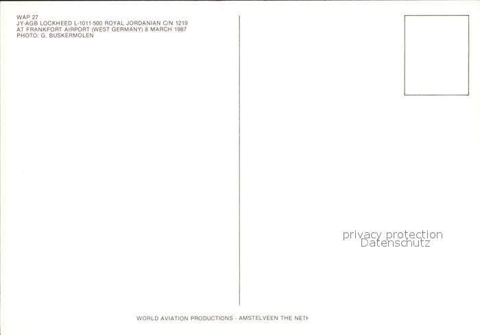 Flugzeuge Zivil Royal Jordanian JY-AGB Lockheed L-1011-500 C/N 1219 postalisch nicht gelaufen Erhaltung siehe scans
