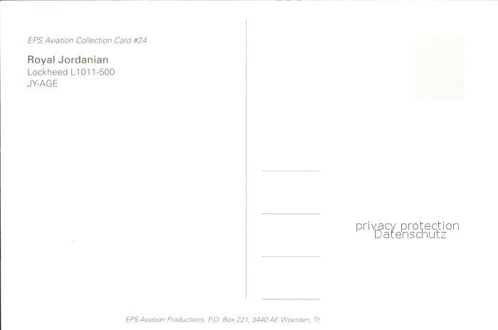 Flugzeuge Zivil Royal Jordanian Lockheed L1011-500 JY-AGE postalisch nicht gelaufen Erhaltung siehe scans