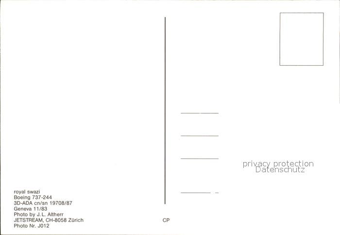 Flugzeuge Zivil Royal Swazi Boeing 737-244 3D-ADA cn/sn 19708787 postalisch nicht gelaufen Erhaltung siehe scans