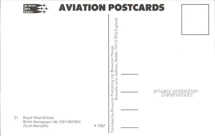 Flugzeuge Zivil Royal West Airlines British Aerospace 146-100 N801 RW postalisch nicht gelaufen Erhaltung siehe scans