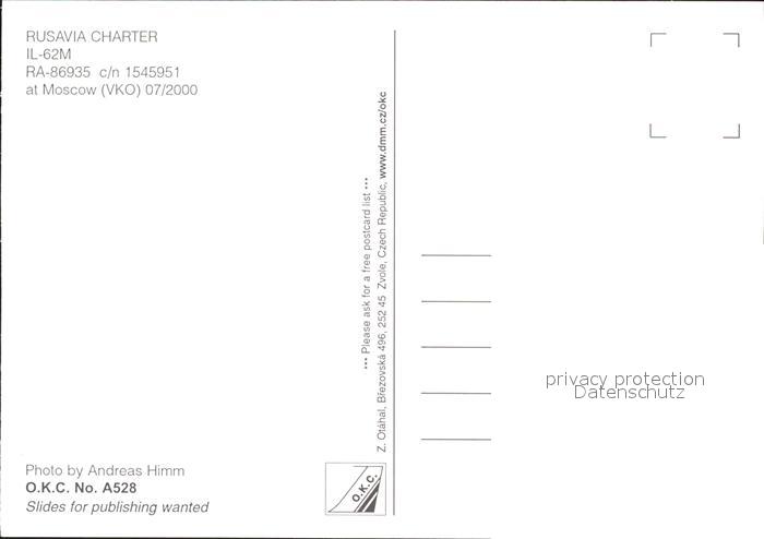 Flugzeuge Zivil Rusavia Charter IL-62M RA-86935 c/n 1545951 postalisch nicht gelaufen Erhaltung siehe scans