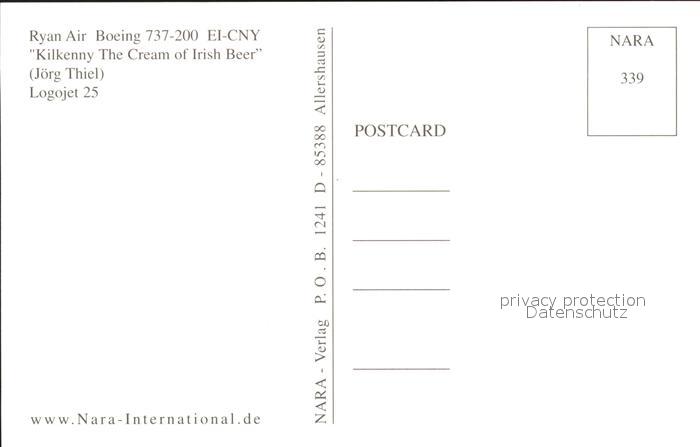 Flugzeuge Zivil Ryan Air Boeing 737-200 El-CNY Kilkenny The Cream of Irish Beer postalisch nicht gelaufen Erhaltung siehe scans