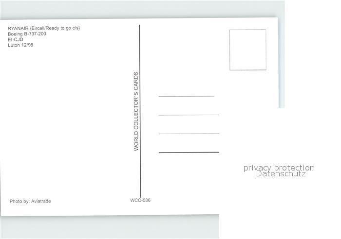 Flugzeuge Zivil Ryanair Eircell/Ready to go c/s Boeing B-737-200 EI-CJD postalisch nicht gelaufen Erhaltung siehe scans