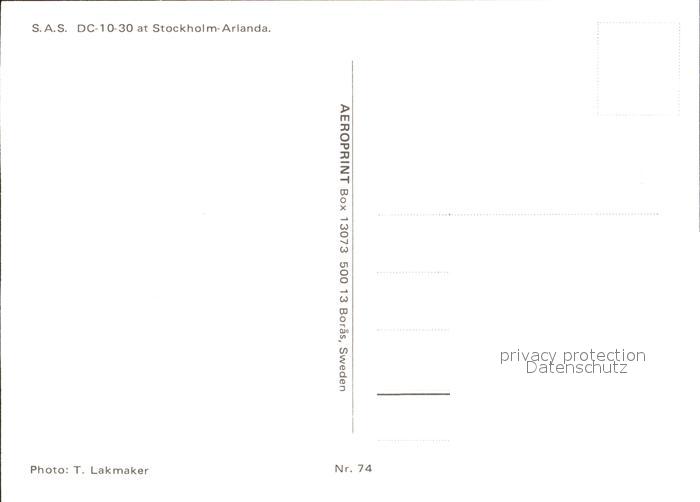 Flugzeuge Zivil S.A.S DC-10-30 at Stockholm-Arlanda postalisch nicht gelaufen Erhaltung siehe scans