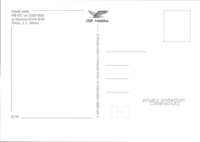 Flugzeuge Zivil SAAB 2000 HB-IZC cn 2000-006 Crossair postalisch nicht gelaufen Erhaltung siehe scans