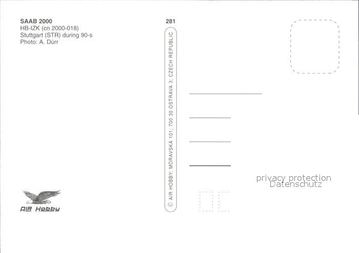 Flugzeuge zivil SAAB 2000 HB-IZK Phanton of the Opera postalisch nicht gelaufen Erhaltung siehe scans