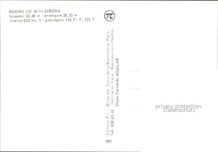 Flugzeuge Zivil Sabena Boeing 737 postalisch nicht gelaufen Erhaltung siehe scans