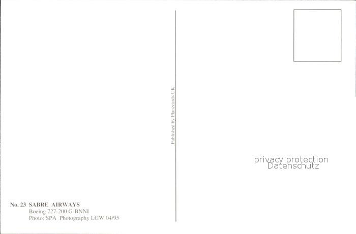 Flugzeuge Zivil Sabre Airways Boeing 727-200 G-BNNI postalisch nicht gelaufen Erhaltung siehe scans