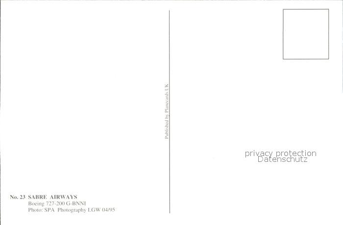 Flugzeuge Zivil SABRE AIRWAYS Boeing 727-200 G-BNNI postalisch nicht gelaufen Erhaltung siehe scans