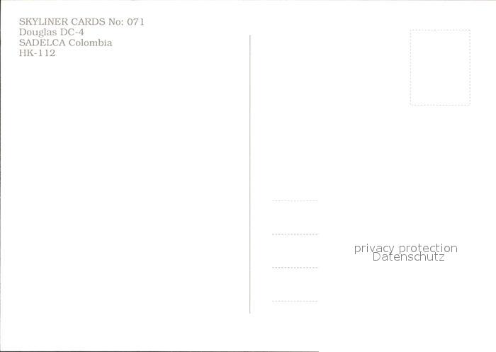 Flugzeuge Zivil Sadelca Colombia Douglas DC-4 HK-112 postalisch nicht gelaufen Erhaltung siehe scans