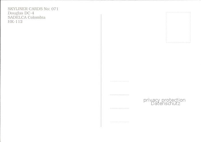 Flugzeuge Zivil Sadelca Colombia Douglas DC-4 HK-112 postalisch nicht gelaufen Erhaltung siehe scans