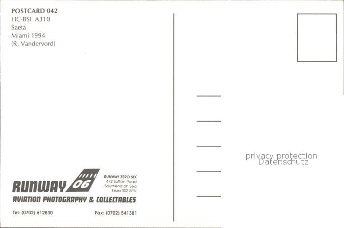 Flugzeuge Zivil Saeta A310 HC-BSF postalisch nicht gelaufen Erhaltung siehe scans