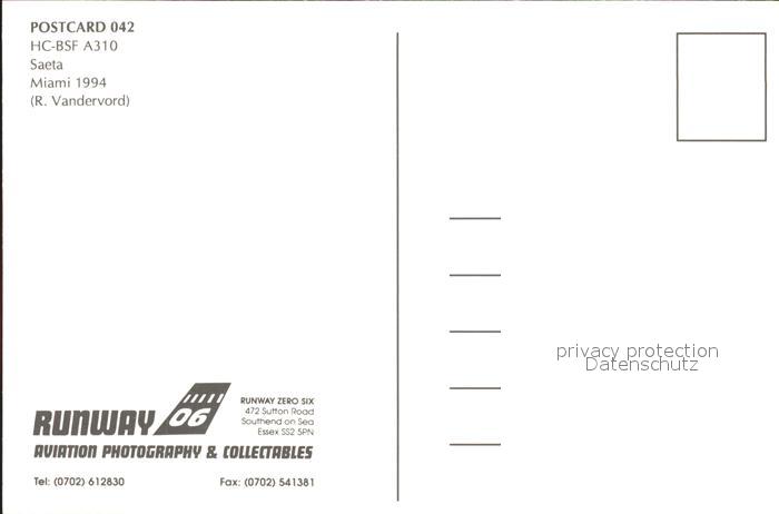 Flugzeuge Zivil Saeta A310 HC-BSF postalisch nicht gelaufen Erhaltung siehe scans