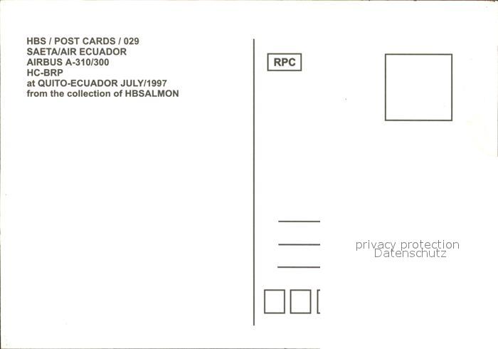 Flugzeuge Zivil Saeta Air Ecuador A310-300 HC-BRP postalisch nicht gelaufen Erhaltung siehe scans