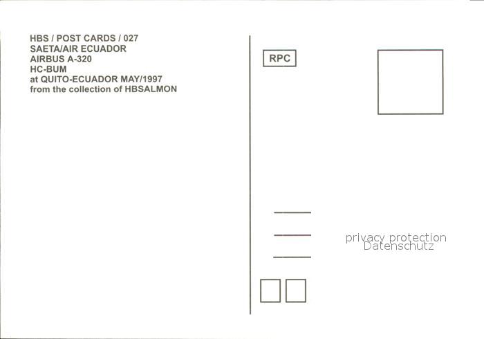 Flugzeuge Zivil Saeta Air Ecuador Airbus A-320 HC-BUM postalisch nicht gelaufen Erhaltung siehe scans