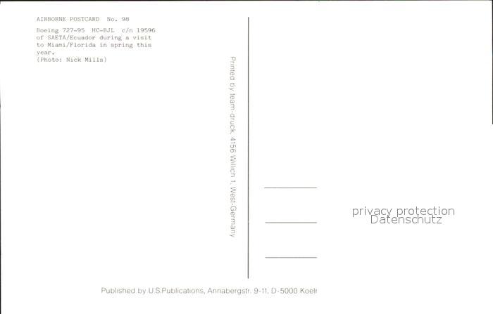 Flugzeuge Zivil SAETA Euador Boeing 727-95 HC-BJL c/n 19596 postalisch nicht gelaufen Erhaltung siehe scans