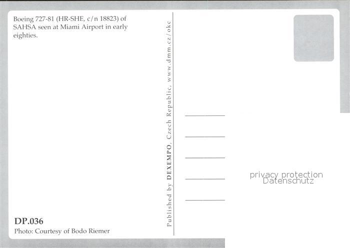 Flugzeuge Zivil Sahsa Boeing 727-81 HR-SHE c/n 18823 postalisch nicht gelaufen Erhaltung siehe scans