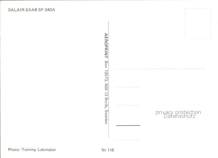 Flugzeuge Zivil Salair Saab SF-340A postalisch nicht gelaufen Erhaltung siehe scans