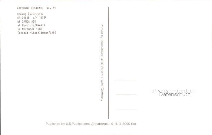 Flugzeuge Zivil Samoa Air Boeing B-707-351C RP-C1886 c/n 19034 postalisch nicht gelaufen Erhaltung siehe scans