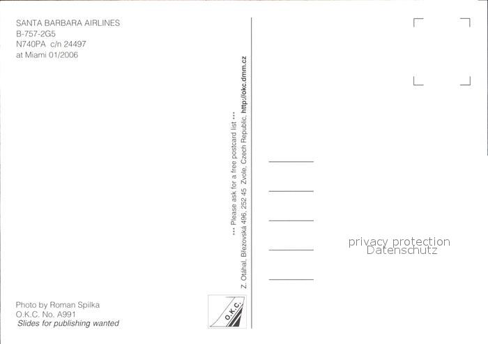 Flugzeuge Zivil Santa Barbara Airlines B-757-2G5 N740PA c/n 24497 postalisch nicht gelaufen Erhaltung siehe scans
