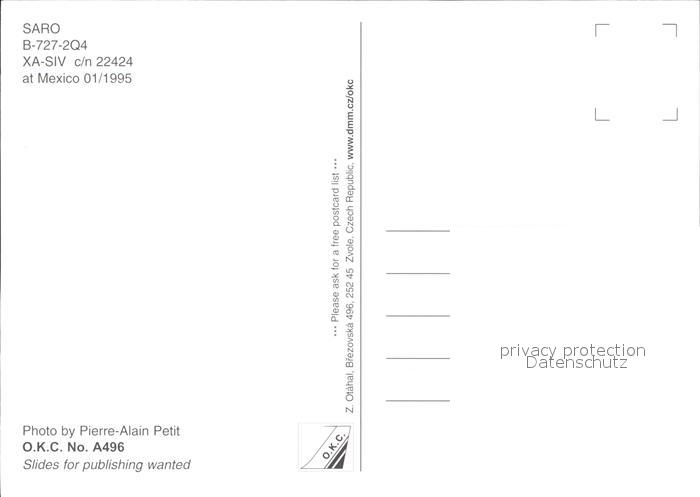 Flugzeuge Zivil SARO B-727-2Q4 XA-SIV c/n 22424 postalisch nicht gelaufen Erhaltung siehe scans
