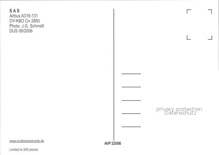 Flugzeuge Zivil SAS Airbus A319-131 OY-KBO Cn 2850 postalisch nicht gelaufen Erhaltung siehe scans
