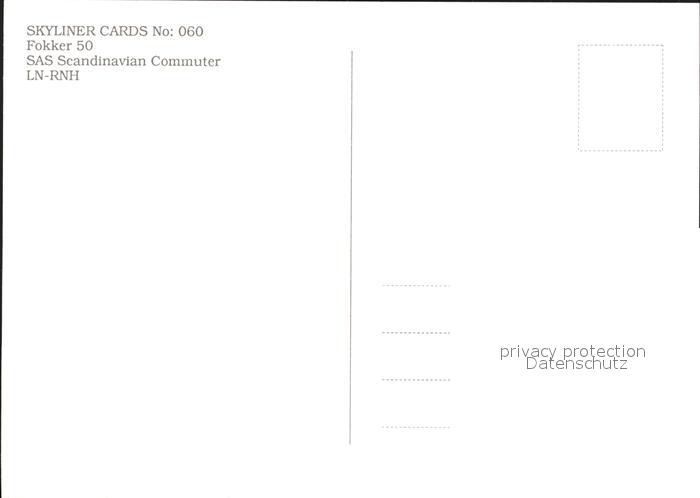 Flugzeuge Zivil SAS Scandinavian Commuter Fokker 50 LN-RNH postalisch nicht gelaufen Erhaltung siehe scans