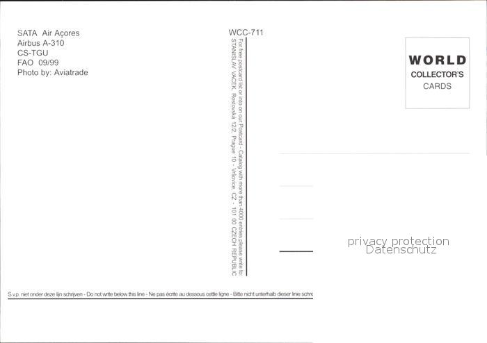 Flugzeuge Zivil SATA Air Acores Airbus A-310 CS-TGU postalisch nicht gelaufen Erhaltung siehe scans
