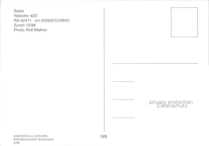Flugzeuge Zivil Satair Yakovlev 42D RA-42411 c/n 4520421219043 postalisch nicht gelaufen Erhaltung siehe scans