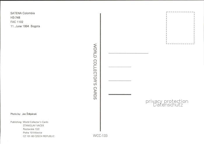 Flugzeuge Zivil Satena Colombia HS-748 Fac 1102 postalisch nicht gelaufen Erhaltung siehe scans