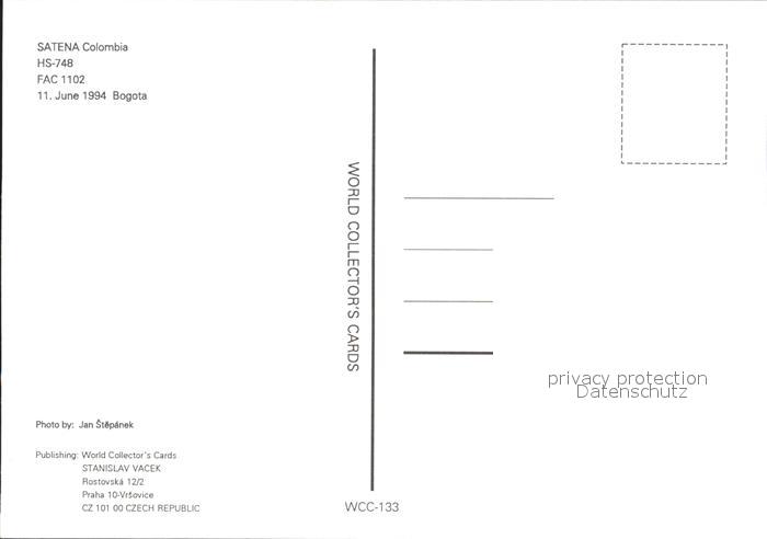 Flugzeuge zivil Satena Colombia HS-748 postalisch nicht gelaufen Erhaltung siehe scans