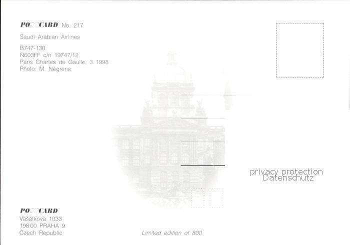 Flugzeuge Zivil Saudi Arabian Airlines B747-130 N603FF c/n 19747/12 postalisch nicht gelaufen Erhaltung siehe scans